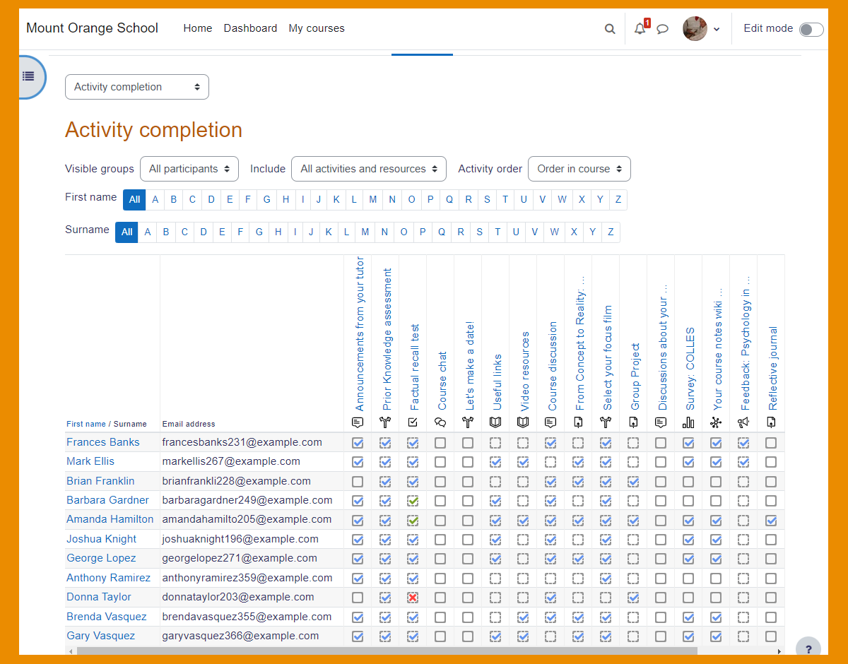 Mount Orange Moodle demo ortamına giriş yapmak için aşağıdaki kullanıcı adı ve şifreleri kullanabilirsiniz.
