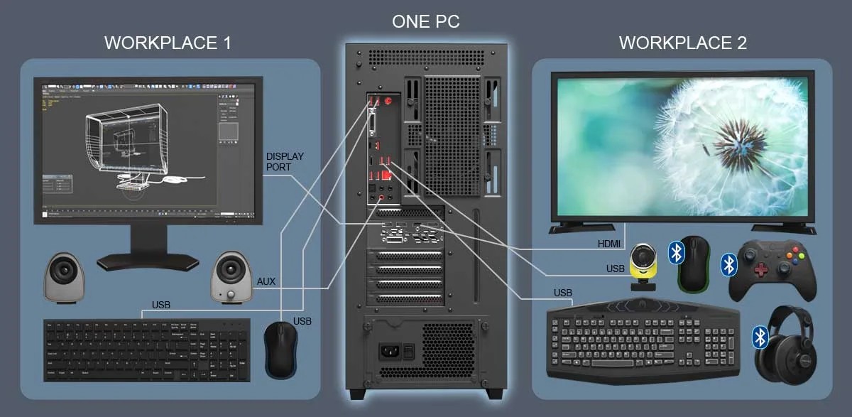 Klasik modelde bir kasa = bir kullanıcıdır. Multiseat yaklaşımında ise güçlü bir kasa, birden fazla bağımsız oturuma bölünür. Her oturum için ayrı monitör + klavye + fare (ve gerekirse kulaklık/mikrofon) atanır. Kullanıcılar aynı anda oturum açar, birbirini engellemeden çalışır.