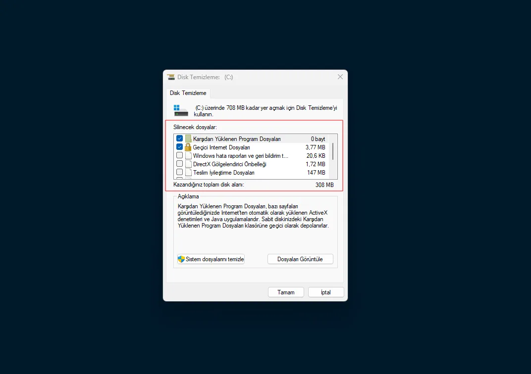 Eski Windows güncelleme dosyaları, önceki kurulum kalıntıları ve geçici sistem dosyaları bazen ciddi miktarda yer kaplayabilir. Bu dosyaları temizlemek hem depolama alanı açar hem de sistemin daha rahat çalışmasına yardımcı olabilir.