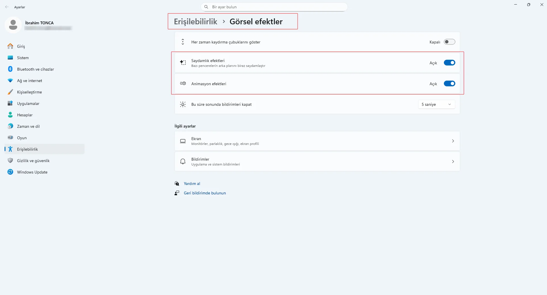 - Görsel efektleri azaltın.