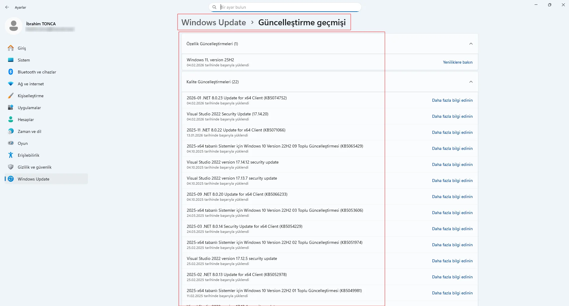 - Windows güncelleme geçmişini kontrol edin.